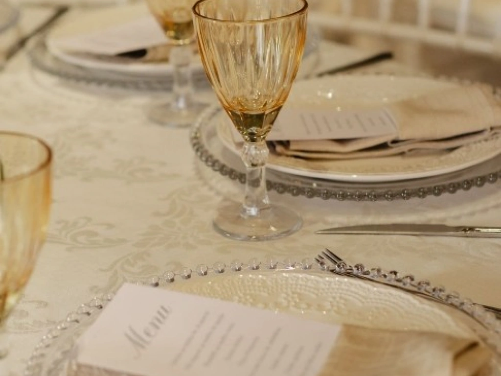 Locação de cadeiras tiffany, taças cristal, louças, sousplat, talheres e decoração de mesa para tornar cada detalhe do seu grande dia inesquecível.