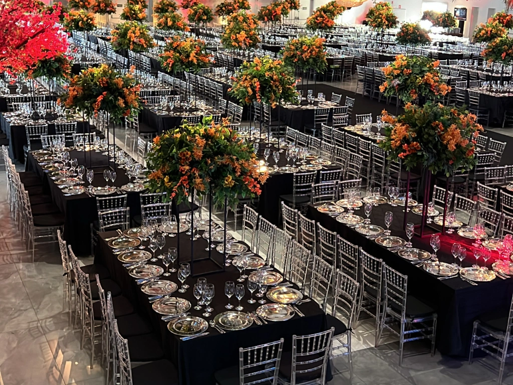 Branca, dourada ou transparente. Elegância clássica para cerimônias e recepções.