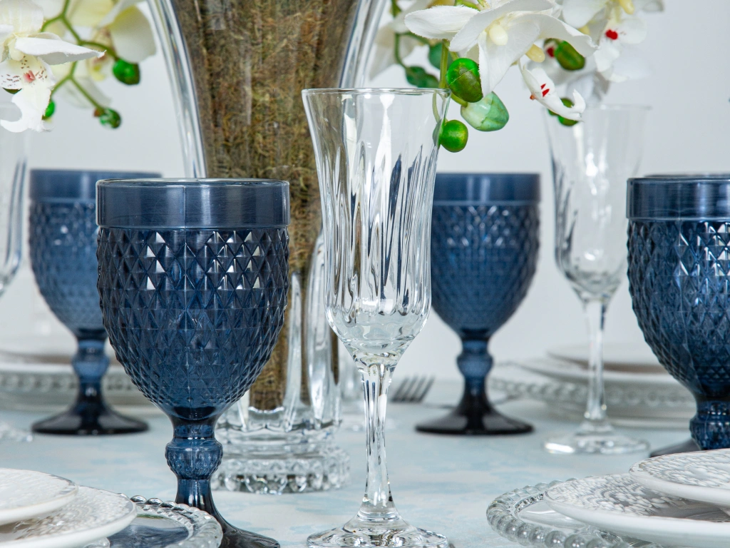 Taças de vinho, champanhe e água das melhores marcas e de alta qualidade.