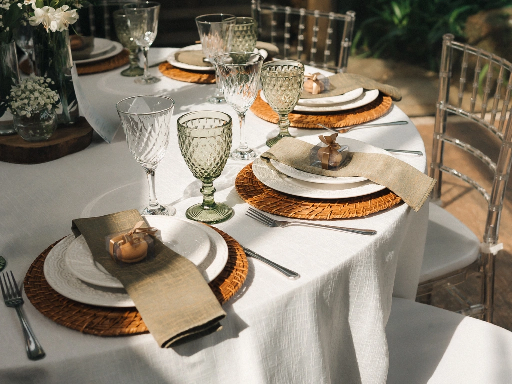Locação de cadeiras tiffany, taças e copos, louças, sousplat, talheres e decoração de mesa para tornar cada detalhe do seu grande dia inesquecível.